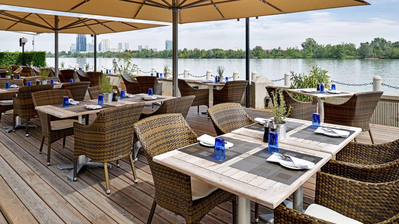 Set along the River Danube, this polished conference hotel is an 11-minute walk from U-Bahn Stadion station and 2.3 km from the 24-hour Wiener Prater park. The bright, airy rooms and suites feature sitting areas, flat-screen TVs and Wi-Fi, plus minifridges; many offer river views. Some upgraded rooms provide access to a private lounge with complimentary breakfast, snacks and drinks. Amenities include a stylish bar, and a waterfront restaurant with locally sourced ingredients and a terrace. There’s a gym, a sauna and a riverfront outdoor pool, as well as 13 event rooms and a business center. Parking and breakfast are extra.