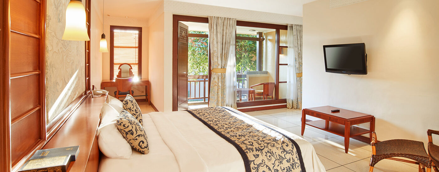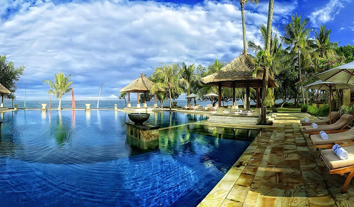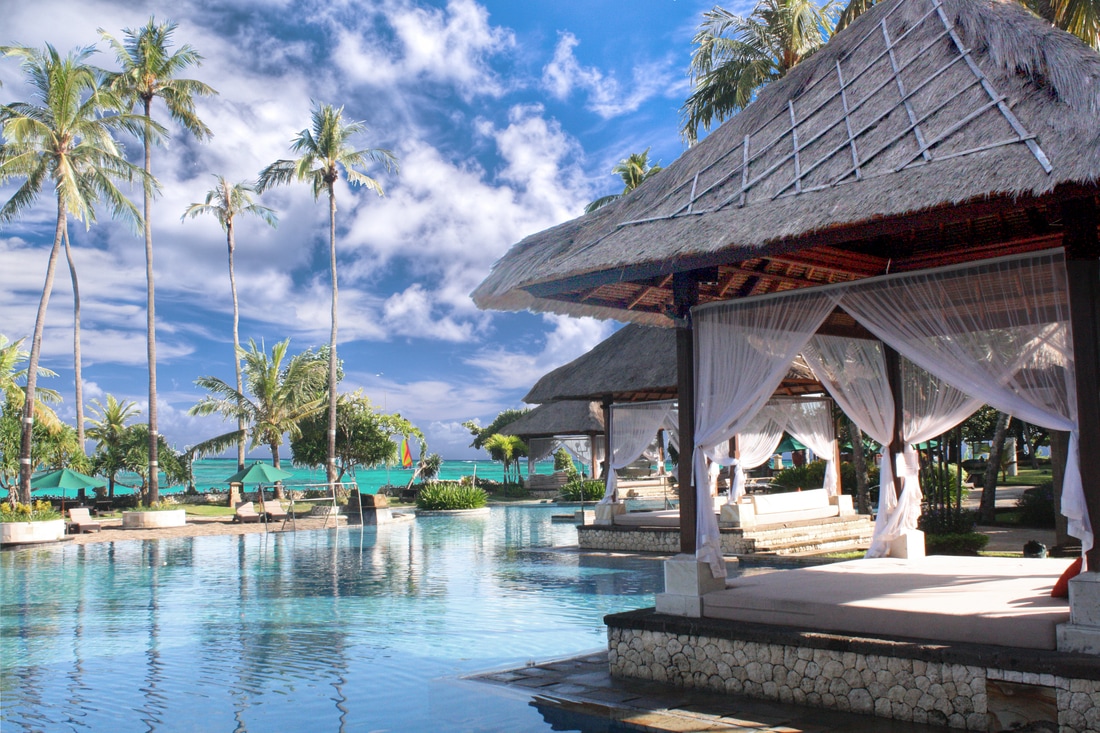 Set in a seaside village, this upscale hotel is 2.3 km from Ngurah Rai International Airport and 11 km from shopping in Seminyak. The airy rooms feature elegant, island-inspired decor and private balconies, plus free Wi-Fi and flat-screen TVs. Suites and villas add living areas. Some upgraded villas offer private plunge pools or lily ponds. Room service is available. A free airport shuttle is offered. There are 4 restaurants, including Japanese and Italian eateries. Additional amenities include a spa, and an outdoor pool with sea views, as well as a fitness center, a tennis court and beach access. Conference facilities are available.