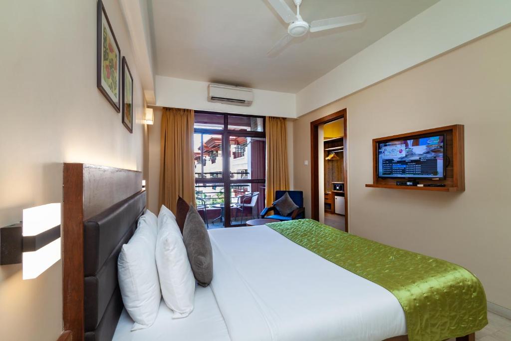 Set in a vibrant area, this informal hotel is 2 km from Calangute Beach and 8 km from 17th-century Fort Aguada, which has a lighthouse. Unpretentious rooms come with free Wi-Fi, satellite TV and balconies. Some add living rooms, floor-to-ceiling windows and/or kitchenettes. Room service is available. Kids age 5 and under stay at no extra cost with an adult. Complimentary amenities include breakfast and parking. There's also a relaxed, open-air bar, an outdoor pool, and an international restaurant offering terrace dining.