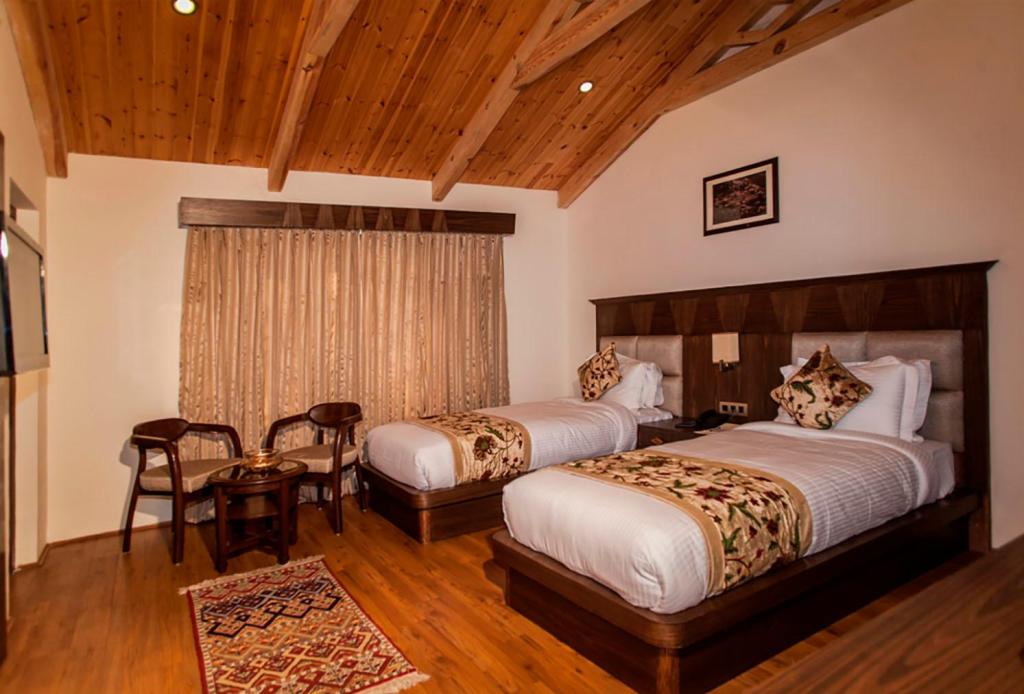 Set on leafy grounds, this genteel hotel in a Kashmiri-style building is 5 km from Dal Lake, 8 km from Chashma Shahi Garden and 14 km from Sheikh Ul–Alam International Airport Srinagar. Featuring decorative rugs and traditional Kashmiri-style handicrafts, the warm rooms offer Wi-Fi and flat-screen TVs, plus safes, and tea and coffeemaking facilities. Some rooms have garden views. Suites add living areas. Room service is offered 24/7. Amenities include an elegant cafe with ornate tile floors, and a casual snack bar. There's also a garden, and a refined lobby lounge featuring exposed-brick walls and a sweeping staircase. Breakfast is available.