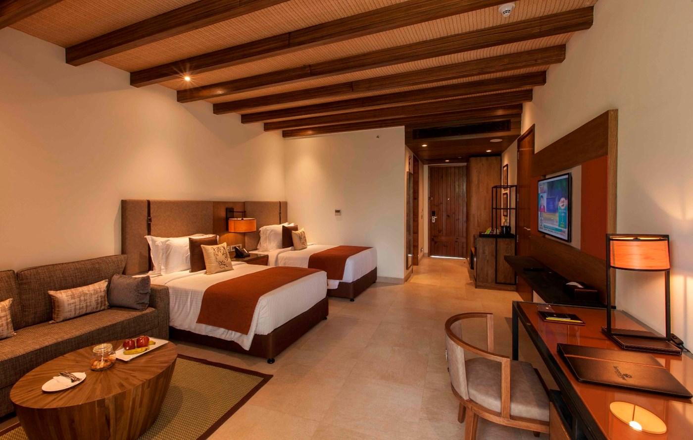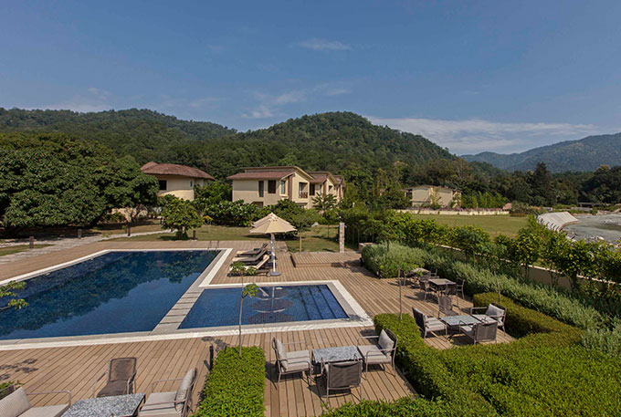 On lush 5-acre grounds next to the Kosi River in Jim Corbett National Park, this laid-back resort is off the NH309 road. It's 3 km from the Dhangarhi Gate and Museum, and 9 km from Girija Devi Temple. Warmly decorated, woodsy rooms have Wi-Fi, flat-screen TVs and mini fridges, plus tea and coffee making facilities. All have safes. Cottages feature thatched roofs; the 2-storey suites add living rooms and river views. There's an informal international restaurant, a cafe, and a glass-enclosed bar offering river views. Other amenities include a spa, a gym and an outdoor pool, as well as a game room and a playground. Breakfast is available.