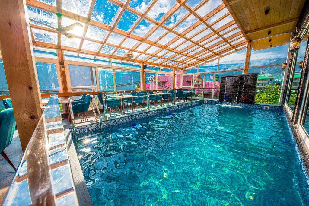 This tranquil hotel with mountain views is 1.6 km from the Kullu Manali Circuit, 3.1 km from the Hidimba Devi Temple and 14 km from the Solang Valley ski area. The relaxed rooms offer flat-screen TVs, Wi-Fi and balconies. Suites add minifridges, and tea and coffeemakers; some have circular beds and woodsy-chic decor. Room service is available. Parking is free. There are 2 casual restaurants serving international cuisine, plus a rooftop eatery with mountain views. Breakfast is offered for a surcharge. Other amenities include a game room, a kids' playground and a business centre.